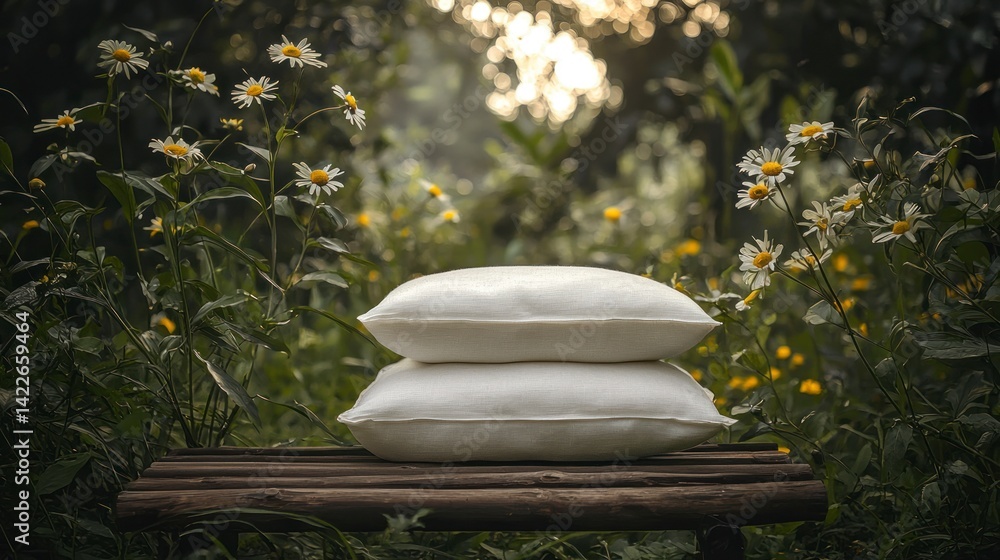 Realistic Organic Cotton Cushions Surrounded By Wildflowers In Wallpaper Mural - Decorly Solutions | Decorly Solutions