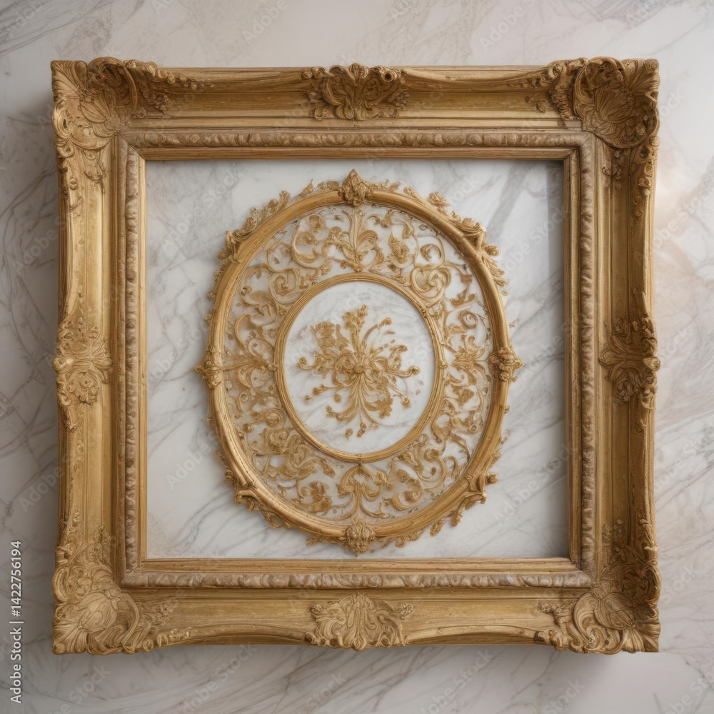 Gilded vintage frame, intricate details, retro royal aesthetic, graphic, intricate, gold