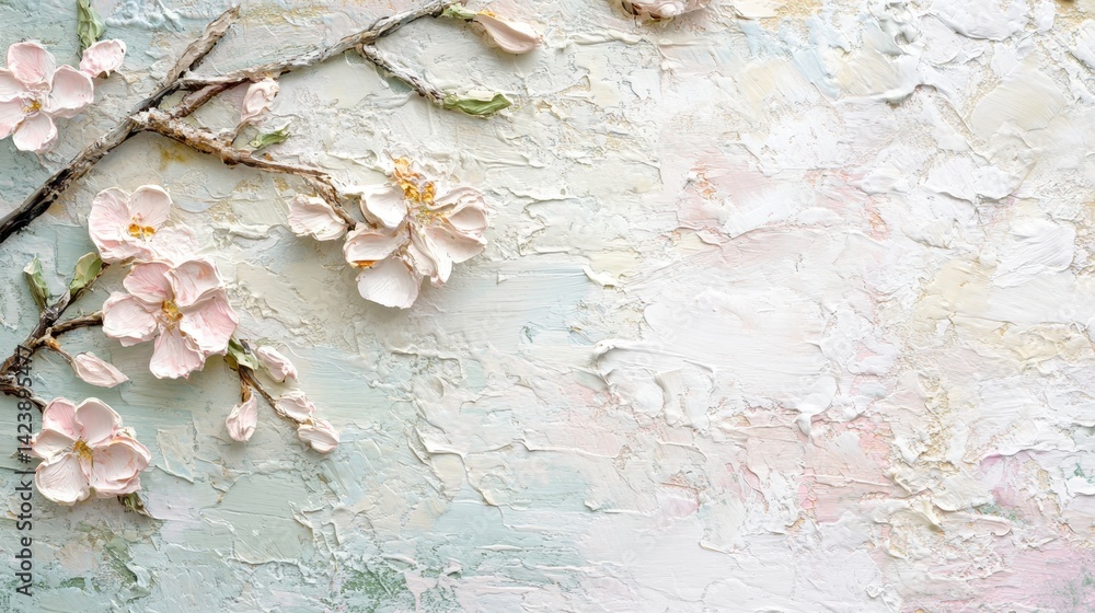 Pastel Textured Acrylic Paint Of Cherry Bloom With Wallpaper Mural - Decorly Solutions | Decorly Solutions