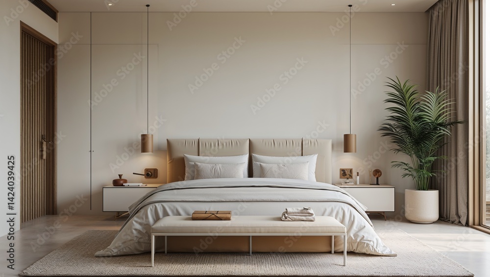 Bedroom Interior Design with Modern Furniture and Neutral Colors