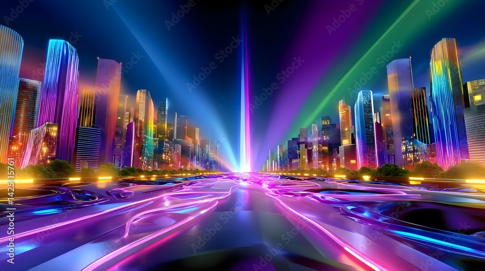 Neon Cityscape Futuristic Highway At Night - Futurism Wallpaper Mural - Decorly Solutions | Decorly Solutions