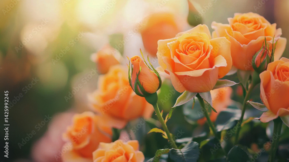 Beautiful Orange Roses Bloom In Garden Showcasing Their Wallpaper Mural - Decorly Solutions | Decorly Solutions