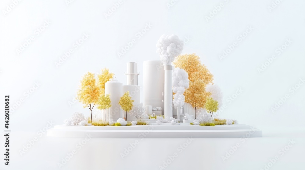 Factory with Trees Minimalist Style High-resolution Render I Wallpaper