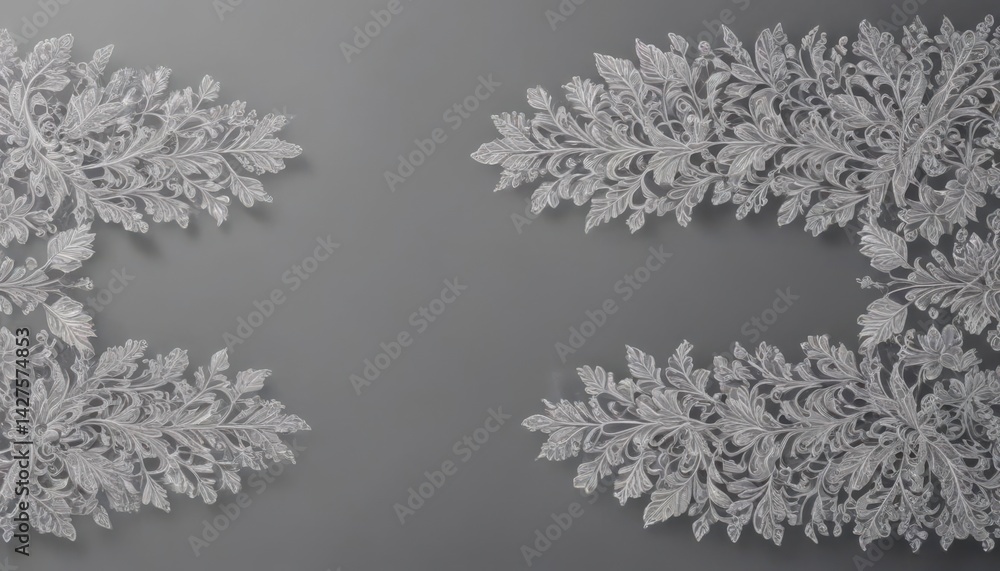 Intricate silver leaf border, shimmering details, elegant design , backdrop, graphics