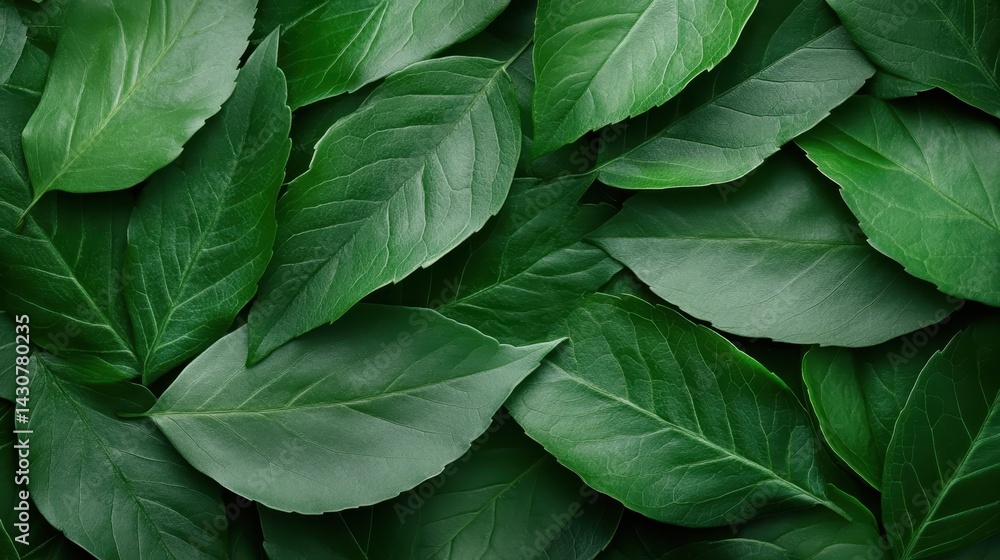 Lush Green Leaves Overlapping, Creating Vibrant Natural Texture