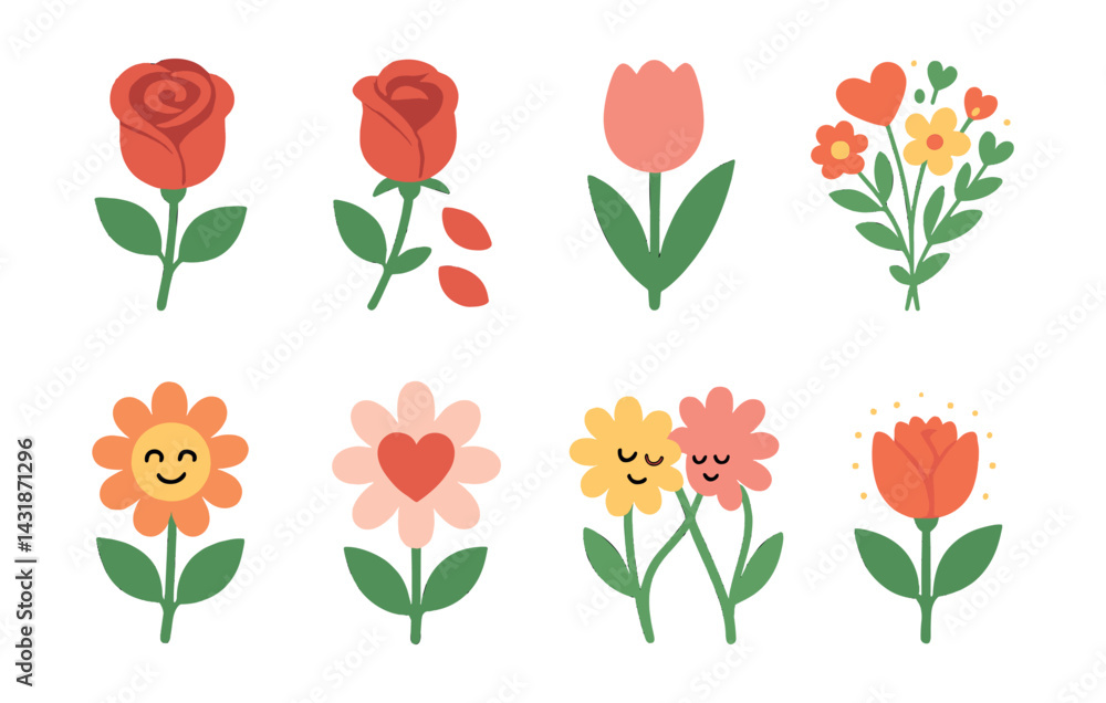 Charming Romantic Flower Icon Set Simple Floral Designs Wallpaper Mural - Decorly Solutions | Decorly Solutions
