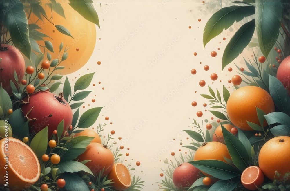 Lush digital painting of vibrant citrus fruits and berries n Wallpaper