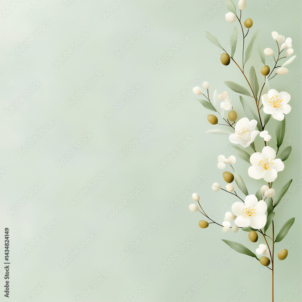 Cute Olive Blossom Illustration Wallpaper Mural - Decorly Solutions | Decorly Solutions