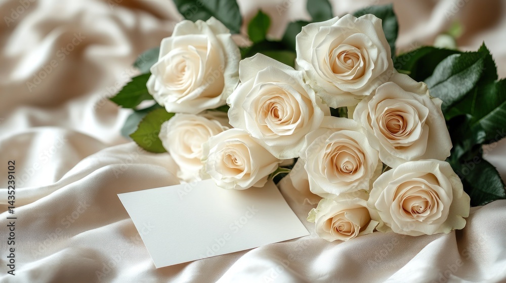 Bouquet of white roses with blank card