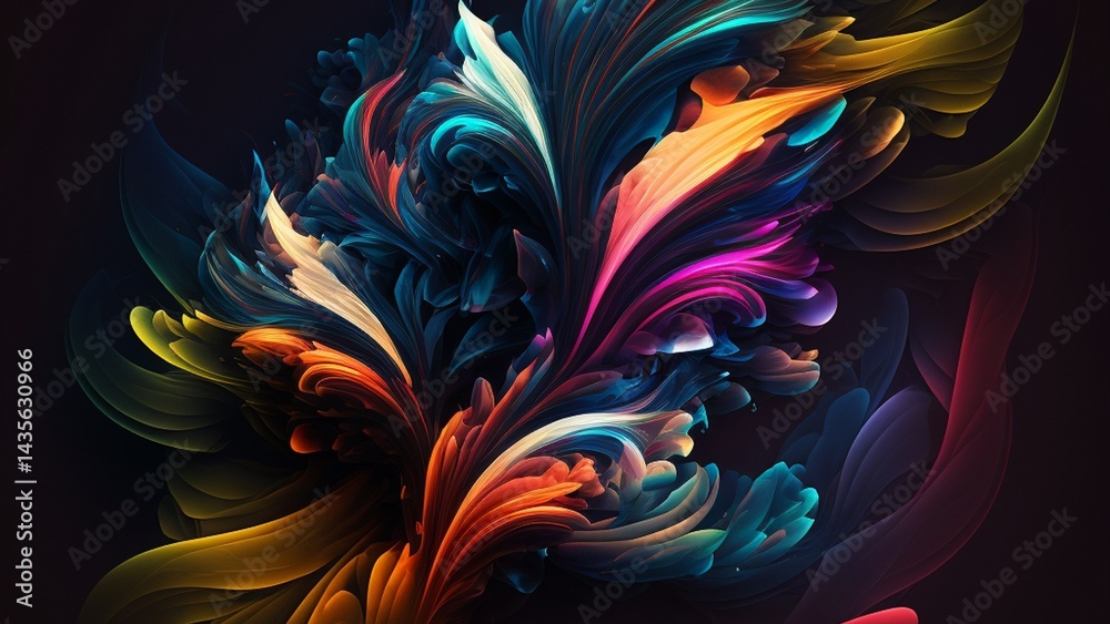 Vibrant Swirls of Fantasy. An intricate dance of fiery colors and fluid shapes, this abstract artwork captivates with its vibrant, fantastical patterns.
