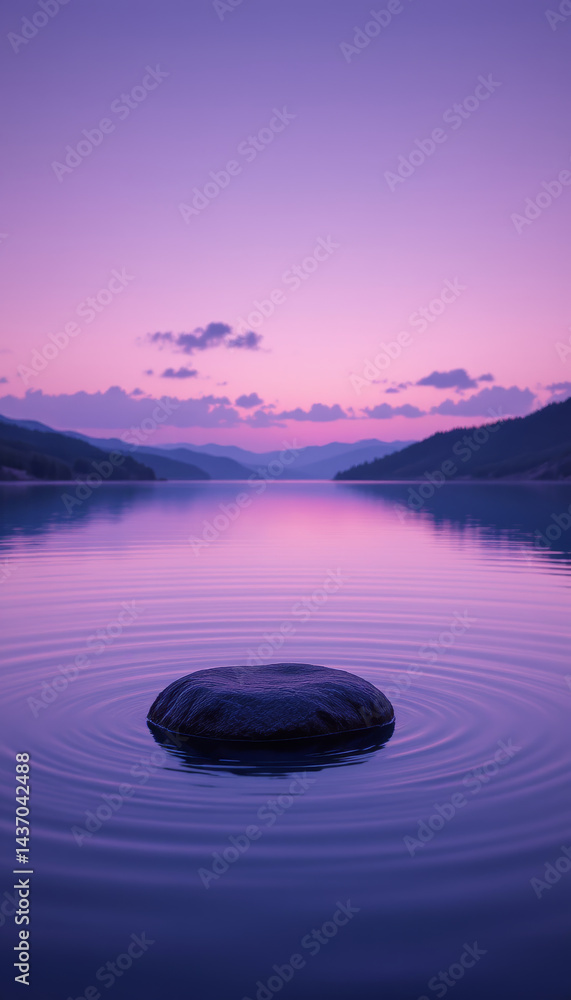 Tranquil Lake Scene Featuring Solitary Stone In Foreground Wallpaper Mural - Decorly Solutions | Decorly Solutions