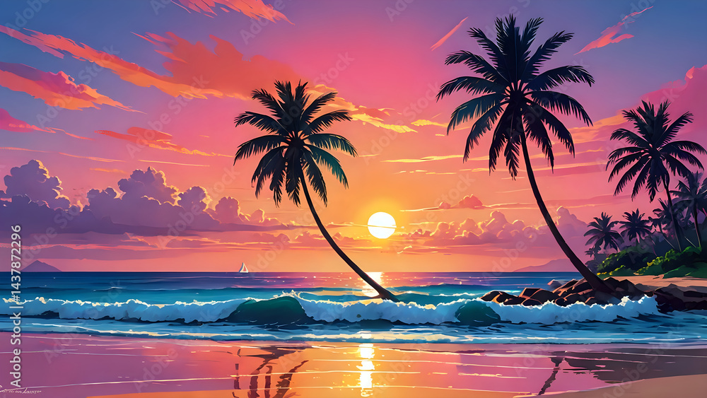 Colorful Tropical Sunset On The Beach Bright Sky Wallpaper Mural - Decorly Solutions | Decorly Solutions