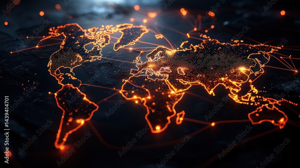Global Network Map Glowing World Map Dark Background Wallpaper Mural - Decorly Solutions | Decorly Solutions