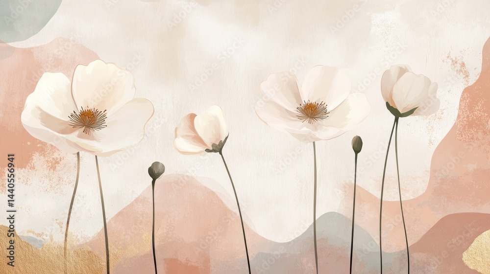 Abstract Painting Of Delicate White Flowers On A Wallpaper Mural - Decorly Solutions | Decorly Solutions
