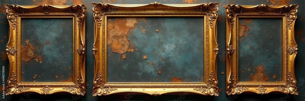 Ornate gold and green picture frame, aged texture , isolated, decorative, aged