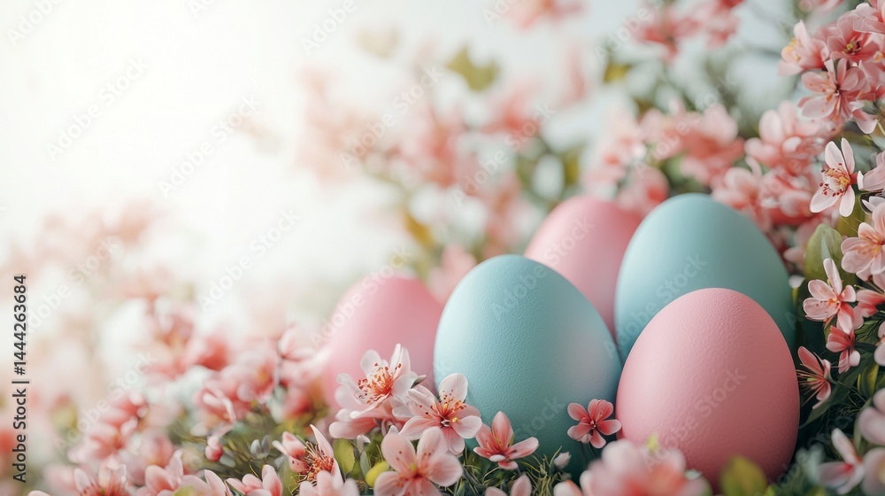 Pastel-colored Eggs Arranged Creatively With Cherry Blossoms for a Spring Celebration