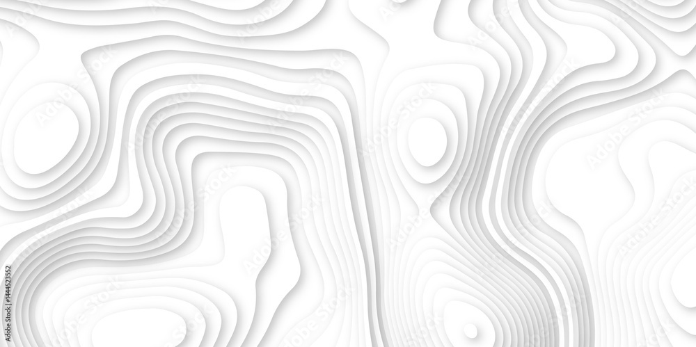 Topographic White And Gery Wavey Contour Line Style Map White Background.