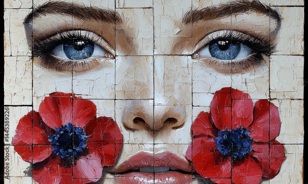 Close-up Portrait Of A Woman S Face Adorned Wallpaper Mural - Decorly Solutions | Decorly Solutions