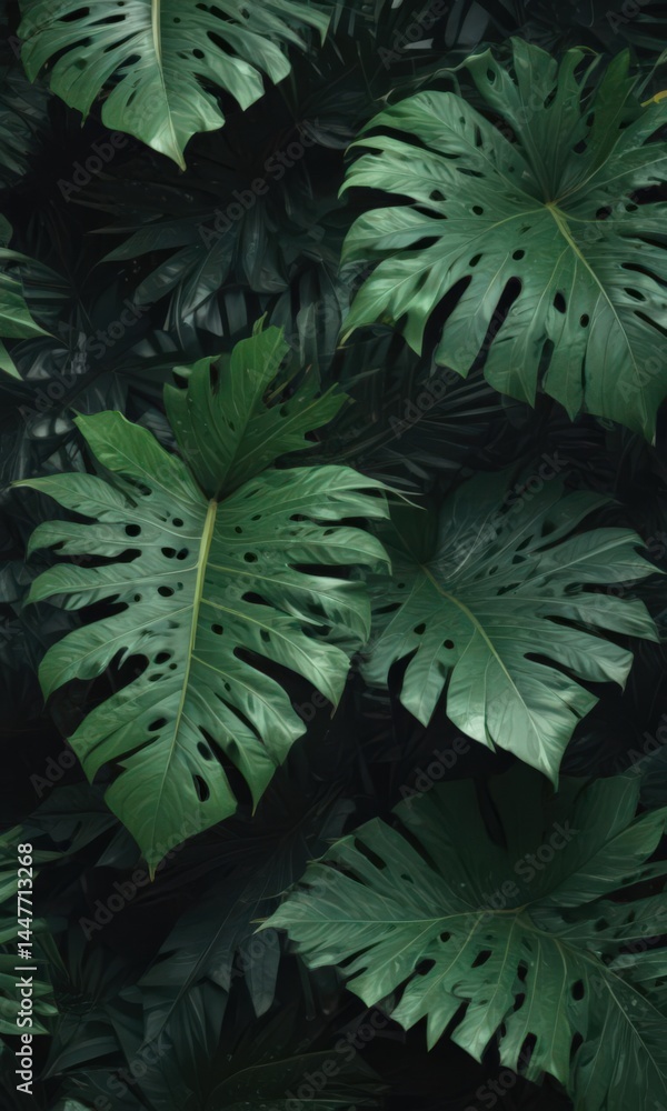 Luxurious dark green & black tropical leaf abstract  Bold, exotic, shadowy design ,  sophisticated,  motif,  texture
