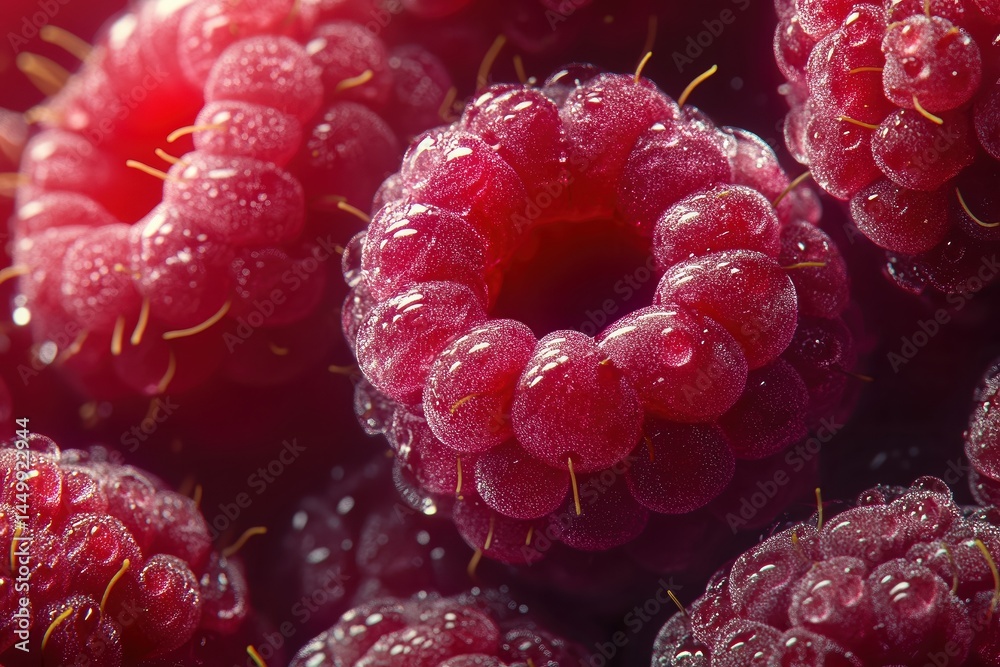 Close-up Of Fresh Raspberries With Visible Moisture Vibrant Wallpaper Mural - Decorly Solutions | Decorly Solutions