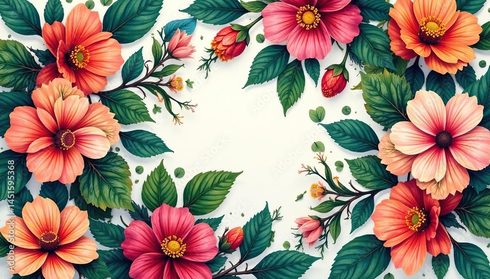 Intricate Floral Pattern Vibrant Blooms & Leaves Leaves Wallpaper Mural - Decorly Solutions | Decorly Solutions