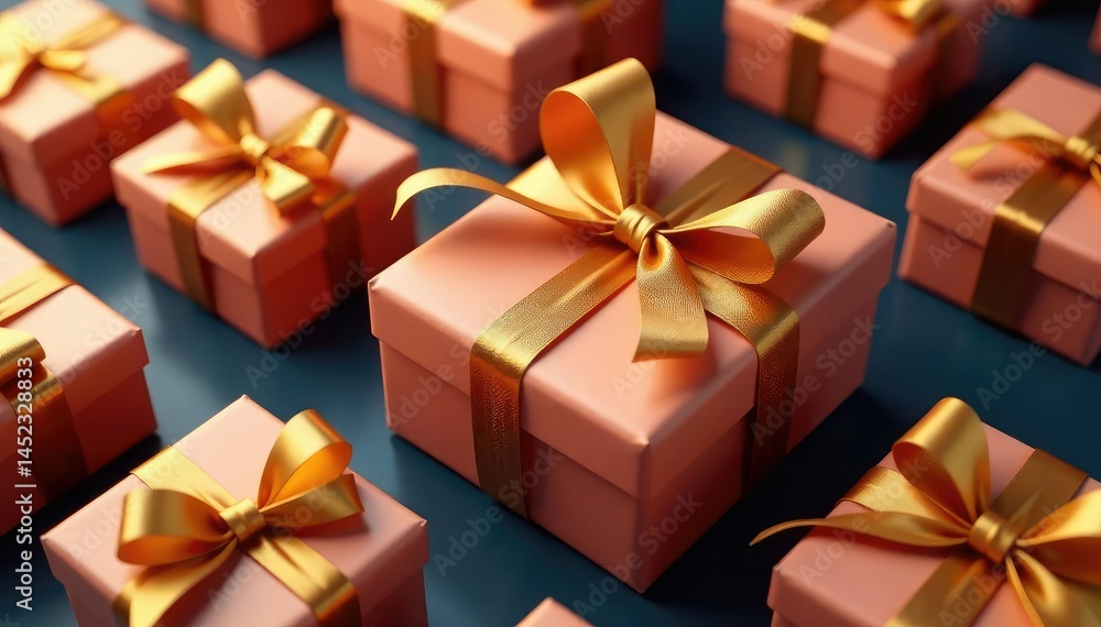 Elegant Gold Ribbon Tied Gift Boxes Repeating Pattern Wallpaper Mural - Decorly Solutions | Decorly Solutions