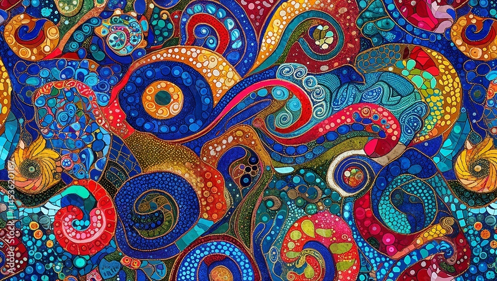 Indonesian Batik Swirl Smalt Mosaic Abstract Design Pattern Wallpaper Mural - Decorly Solutions | Decorly Solutions