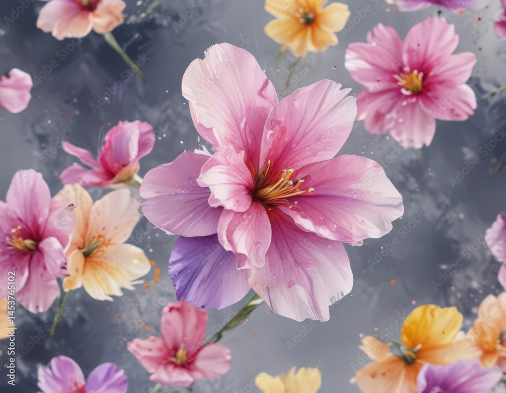 Expressive Watercolor Flower Petals Artistic Composition Vibrant Bright Wallpaper Mural - Decorly Solutions | Decorly Solutions