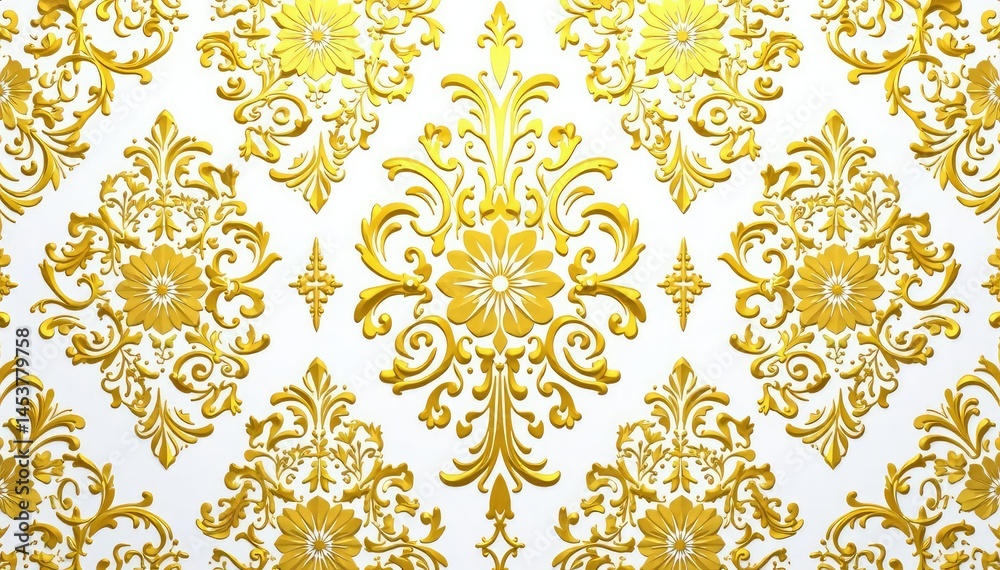 Intricate Floral Damask Pattern In Elegant Gold And Wallpaper Mural - Decorly Solutions | Decorly Solutions