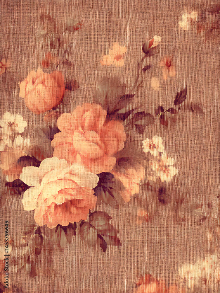 Vintage Floral Pattern with Soft Peach Roses and Delicate Bl Wallpaper