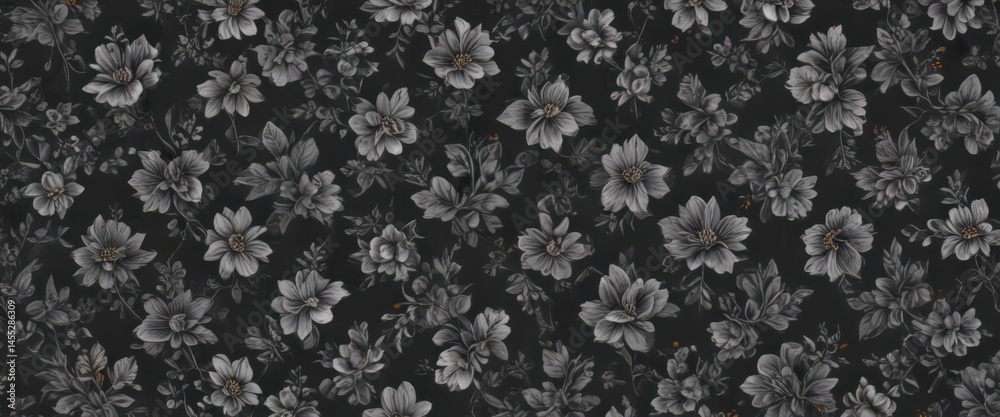Charcoal Grey Small-scale Floral Pattern Perfect For Seamless Wallpaper Mural - Decorly Solutions | Decorly Solutions