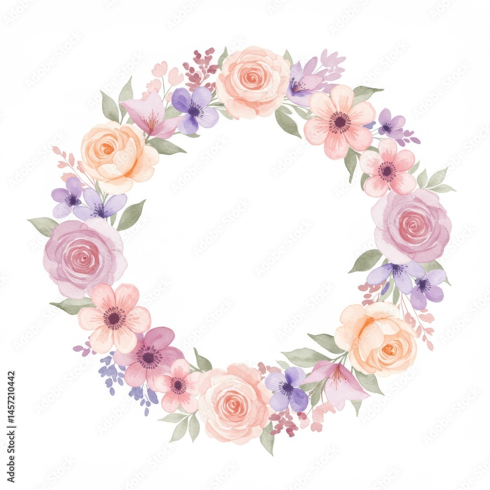 Pastel Watercolor Floral Wreath With Roses And Flowers Wallpaper Mural - Decorly Solutions | Decorly Solutions