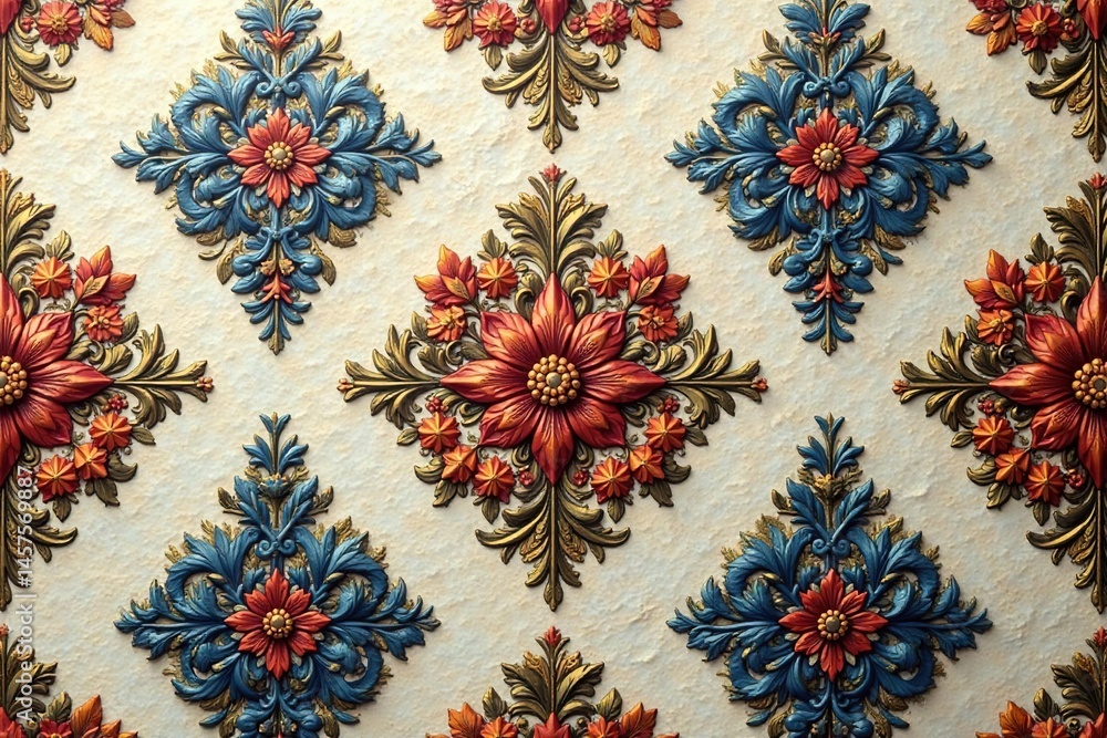 Intricate Floral Damask Pattern On A Textured Surface Wallpaper Mural - Decorly Solutions | Decorly Solutions