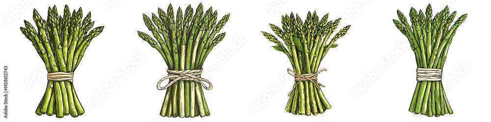 Fresh Green Asparagus Bundle Watercolor Painting Food Illustration Healthy Eating