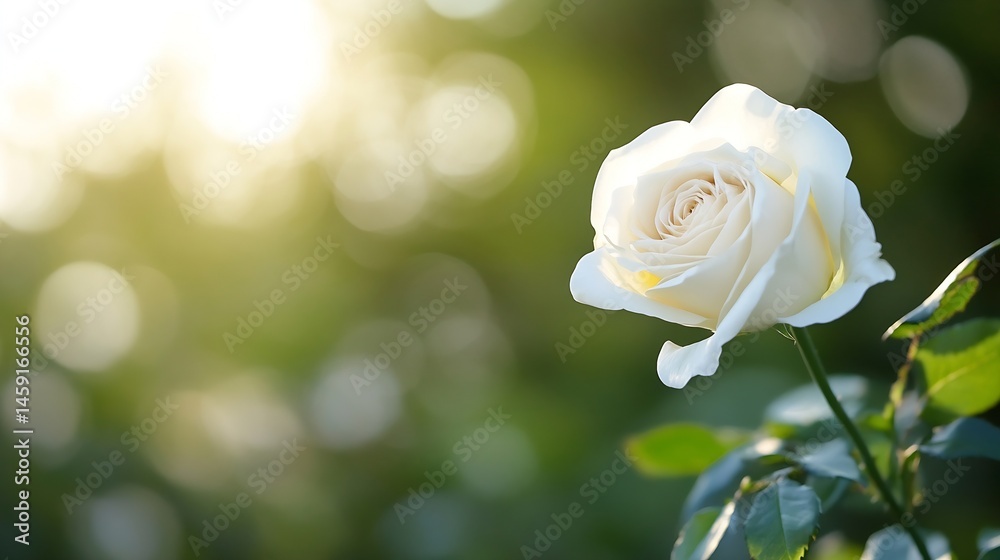 Single white rose illuminated by sunlight delicate petals gr Wallpaper