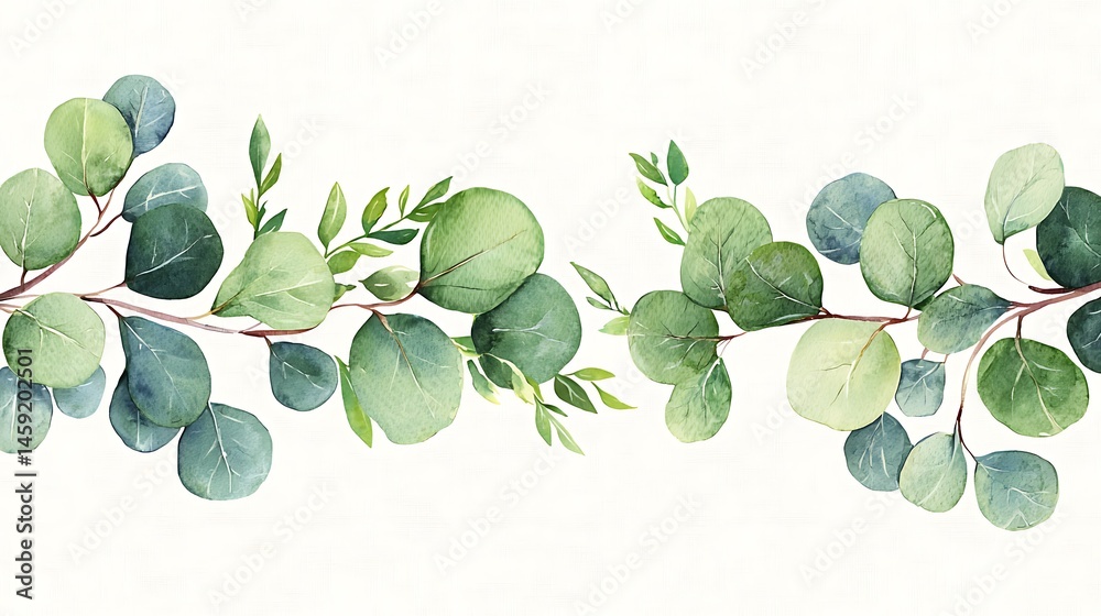 Watercolor Eucalyptus Branches Seamless Border Greenery Botanical Illustration Wallpaper Mural - Decorly Solutions | Decorly Solutions