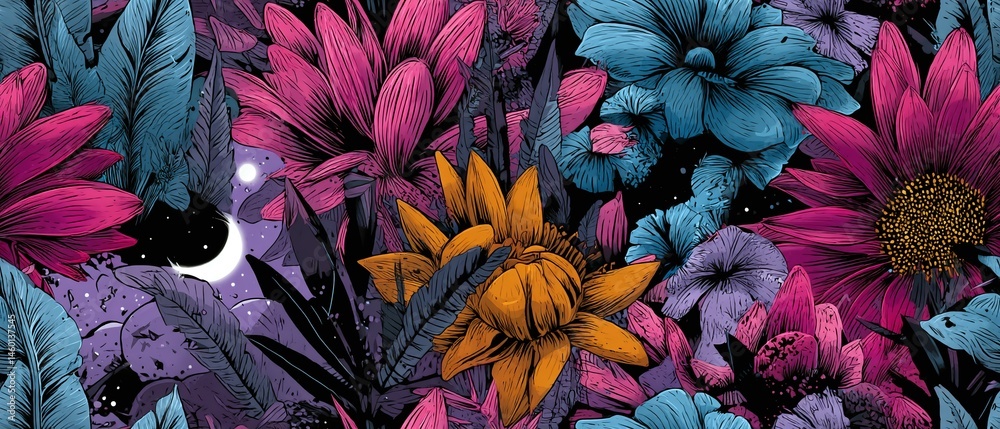 Colorful Flowers And Plants In Pink Blue Orange Wallpaper Mural - Decorly Solutions | Decorly Solutions