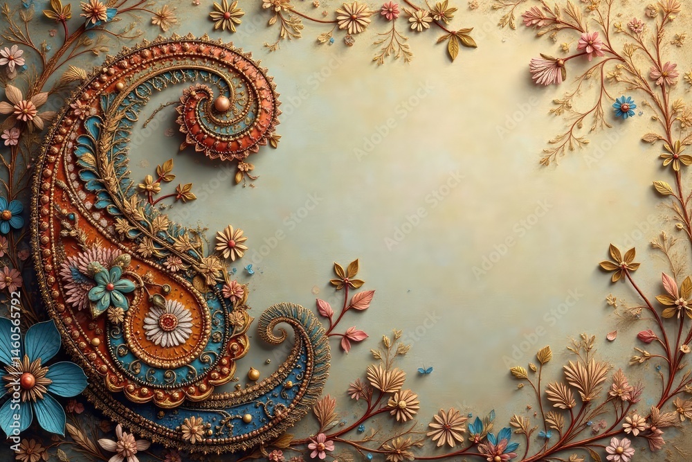 Classic paisley pattern in muted tones on textured backdrop , wallpaper texture, sophisticated design, textile
