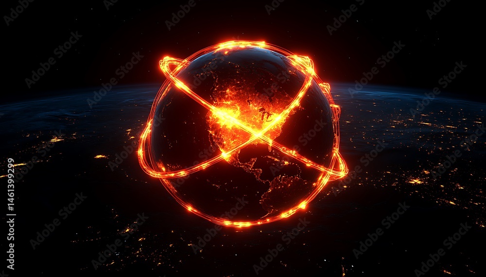 Fiery Orbiting Globe In Outer Space Wallpaper Mural - Decorly Solutions | Decorly Solutions