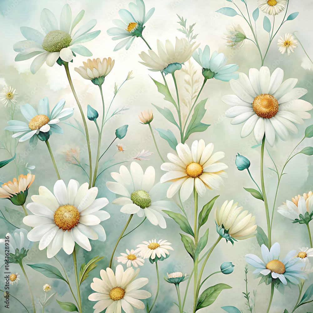 White Daisies In A Field Of Green Floral Wallpaper Mural - Decorly Solutions | Decorly Solutions