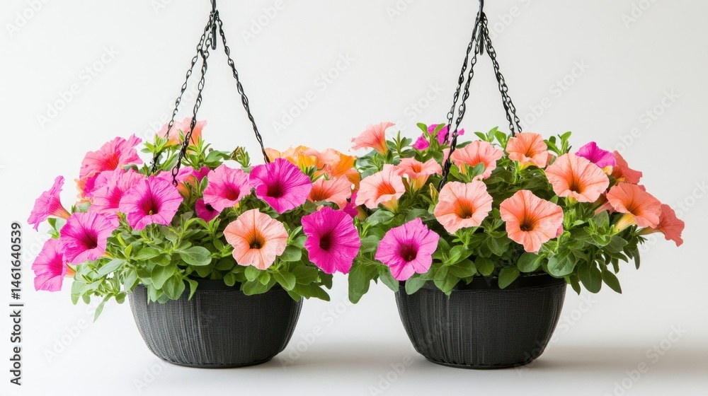 Two Hanging Baskets Of Colorful Petunias In Bloom Wallpaper Mural - Decorly Solutions | Decorly Solutions