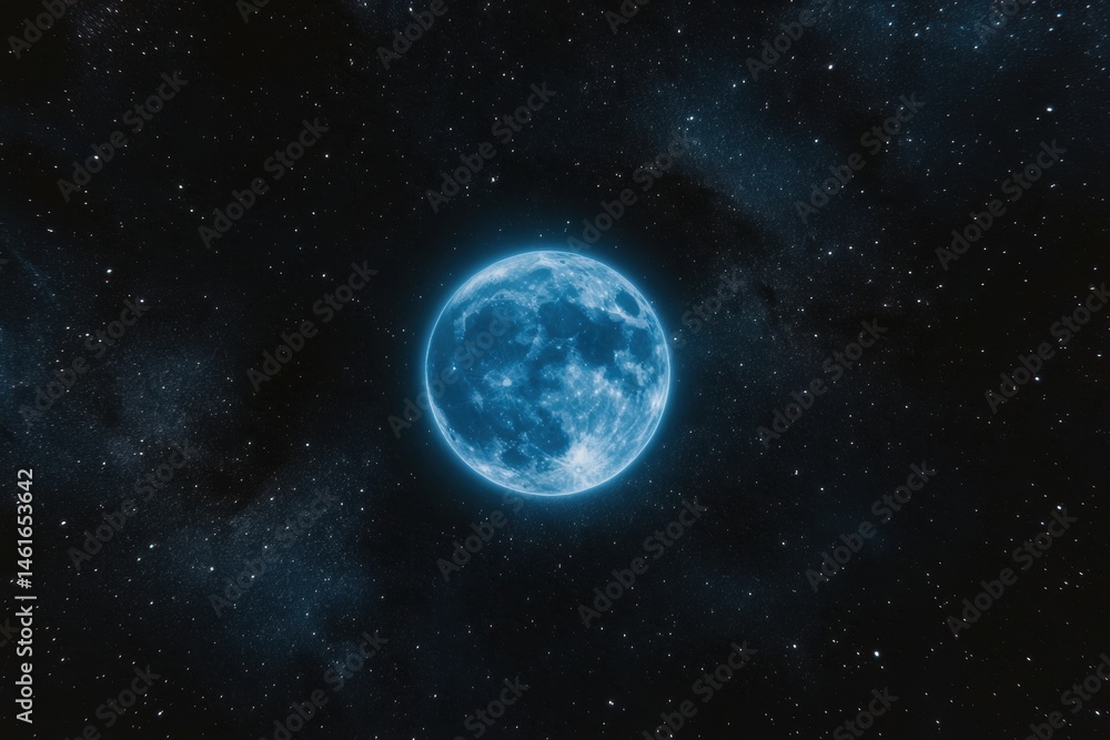 Full Blue Moon Shining Brightly In Starry Night Wallpaper Mural - Decorly Solutions | Decorly Solutions