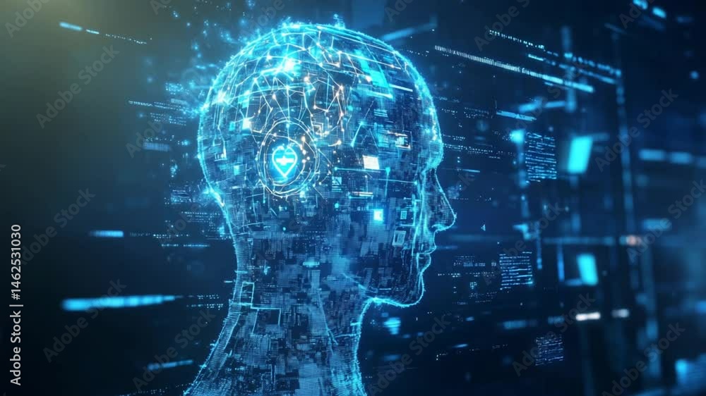 Artificial Intelligence Concept With Digital Human Head For Wallpaper Mural - Decorly Solutions | Decorly Solutions