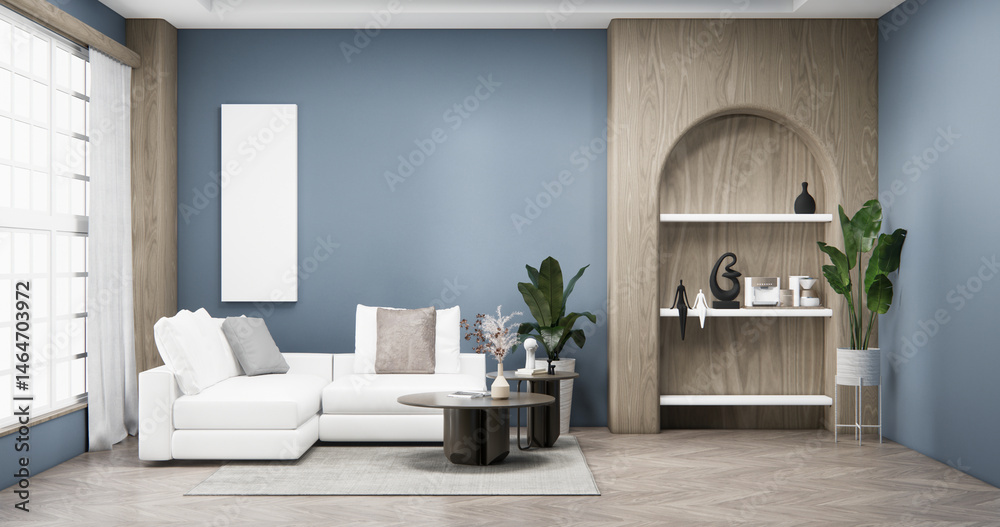 Gray Blue Wall Living Room Interior Design Have Wallpaper Mural - Decorly Solutions | Decorly Solutions