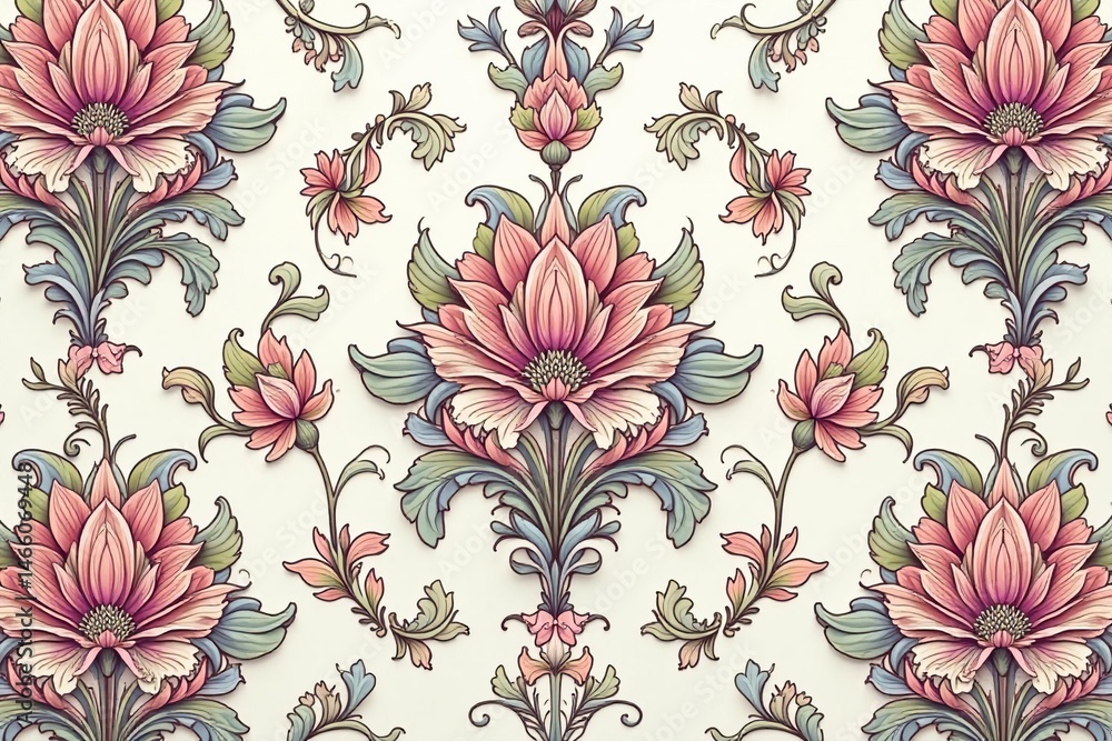 Intricate Floral Damask Pattern In Soft Pastels Design Wallpaper Mural - Decorly Solutions | Decorly Solutions