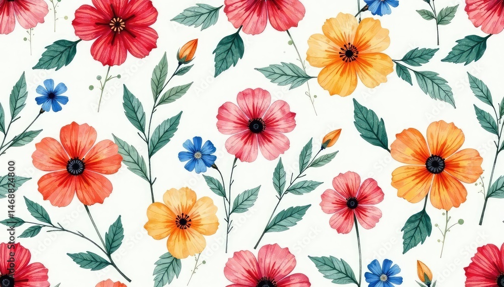 Seamless Repeating Floral Pattern Vibrant Blooms In Watercolor Wallpaper Mural - Decorly Solutions | Decorly Solutions