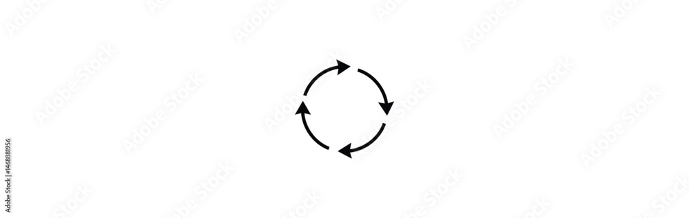 A Circular Array Of Four Black Arrows Pointing To Each Other, Symbolizing Continuous Process, Refresh, Or Cyclical Motion On A Clean White Background.