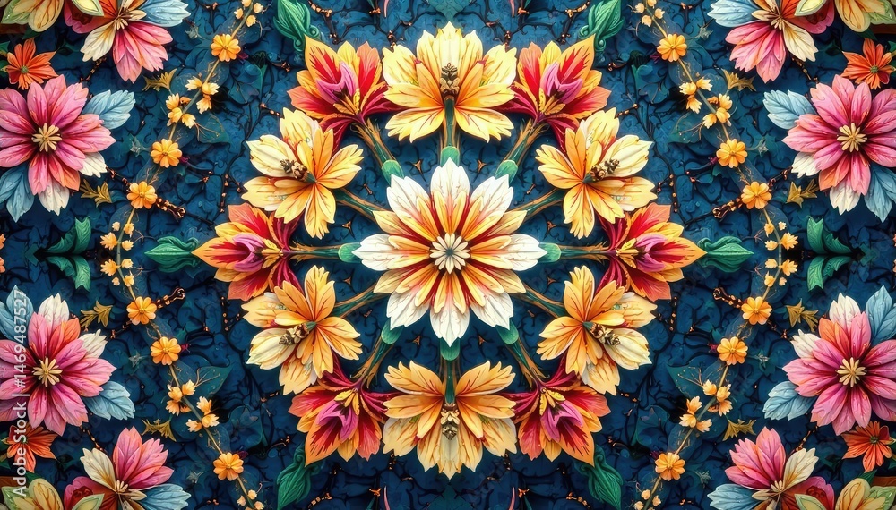 Intricate floral motif within a repeating hexagonal pattern , geometric, background, graphic
