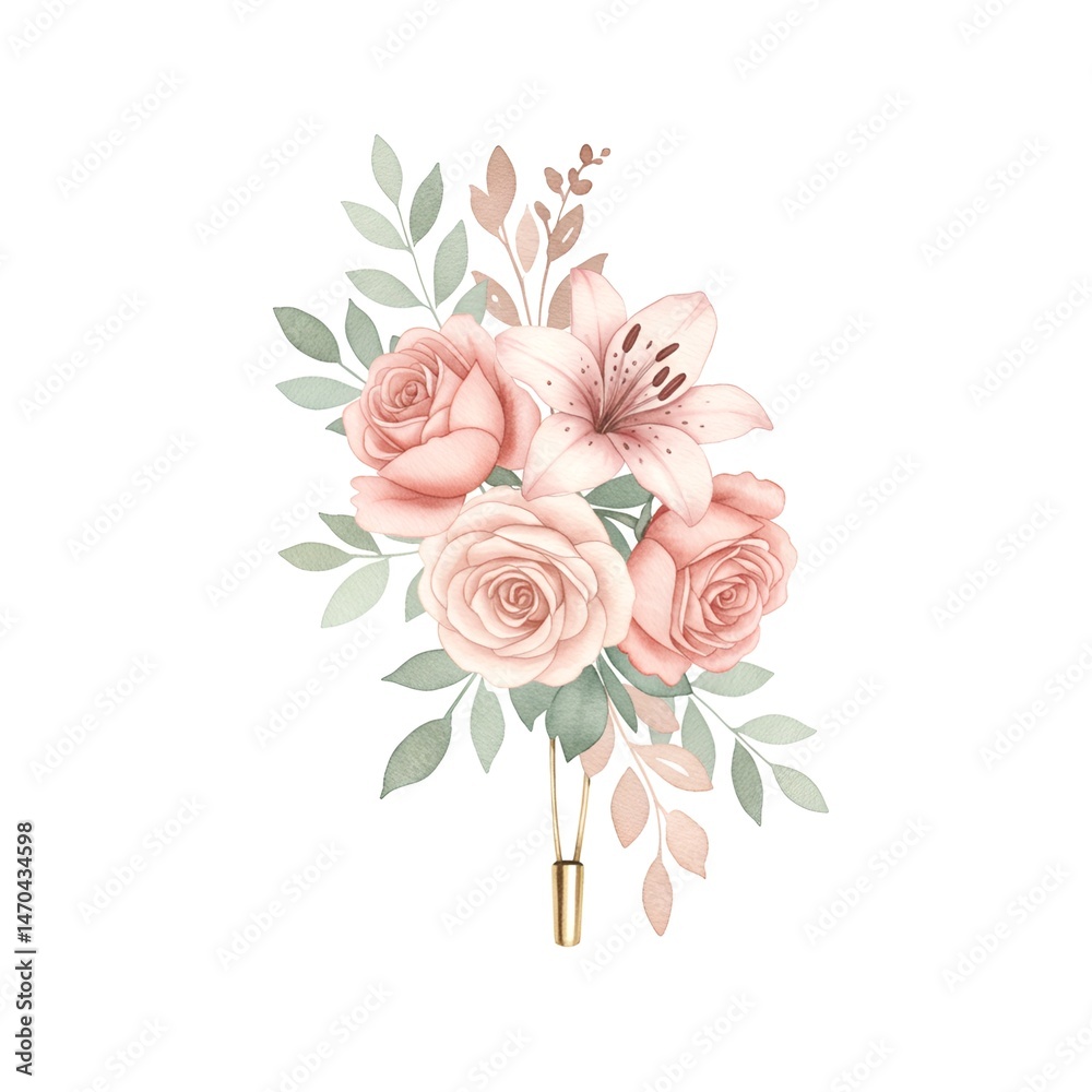 Pastel Pink Rose And Lily Watercolor Bouquet Wallpaper Mural - Decorly Solutions | Decorly Solutions