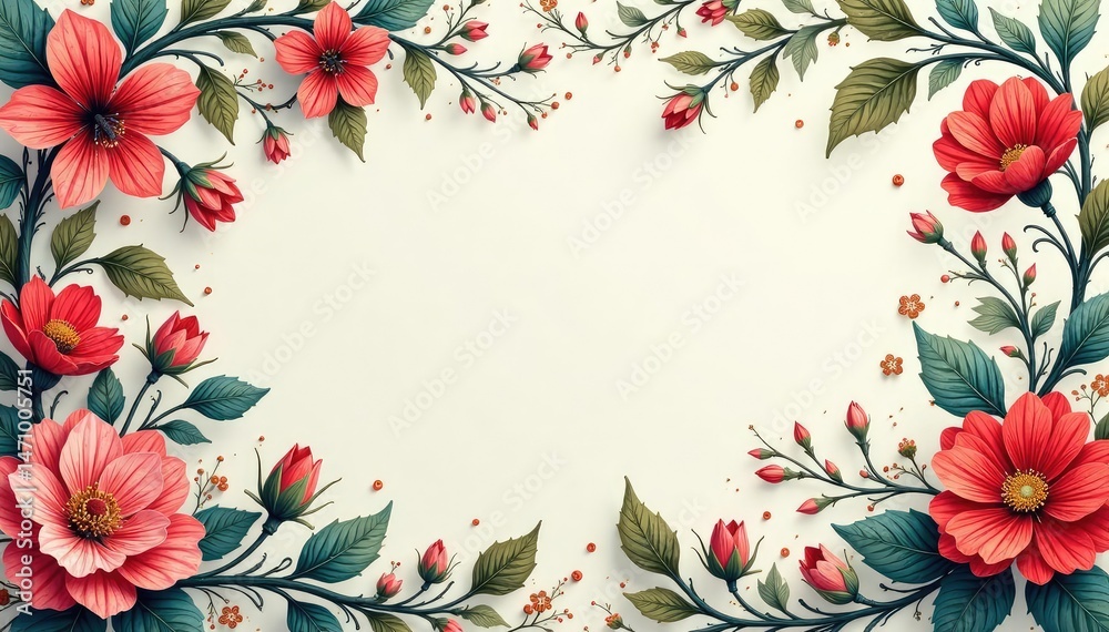 Intricate floral design, delicate botanical elements, endlessly repeating , art, romantic